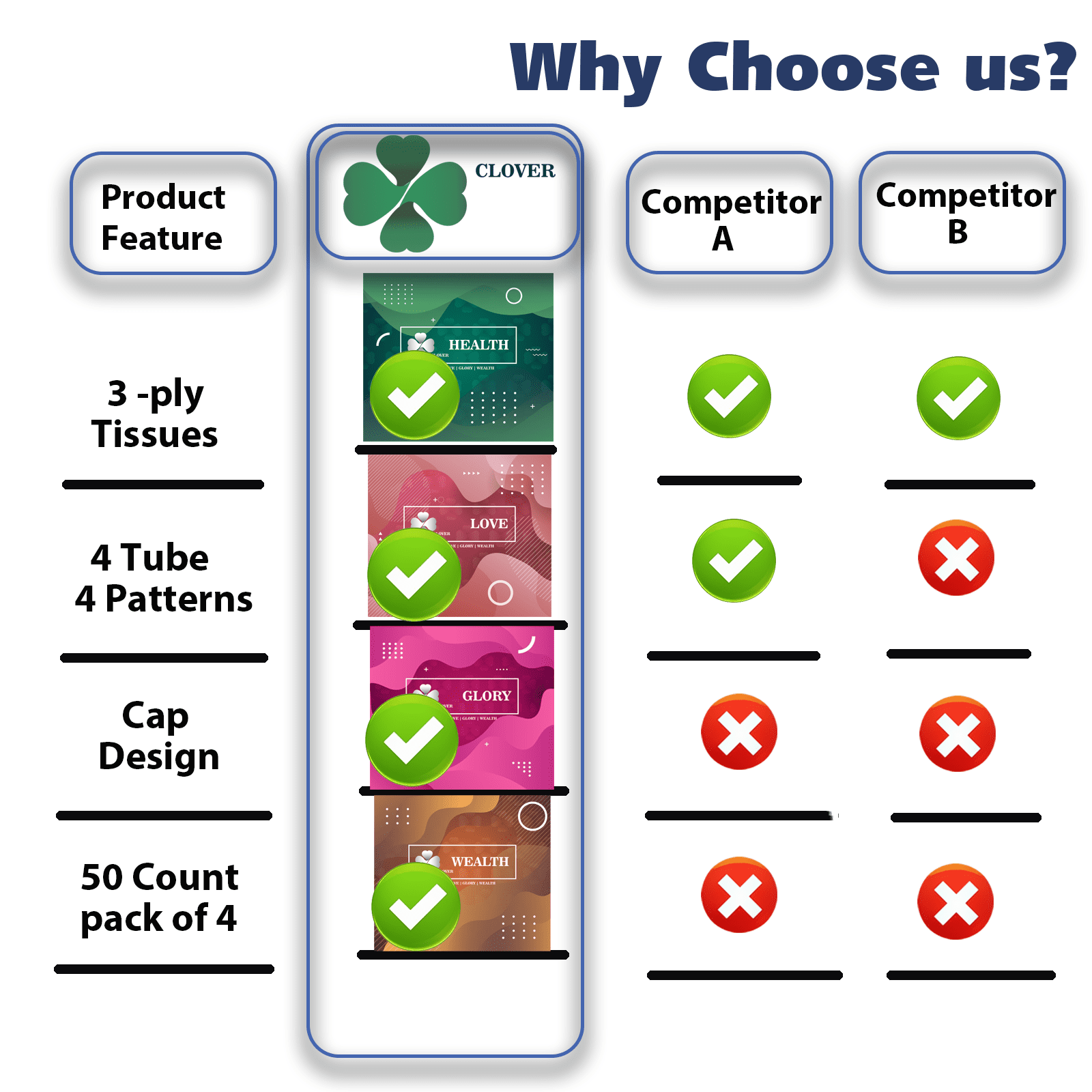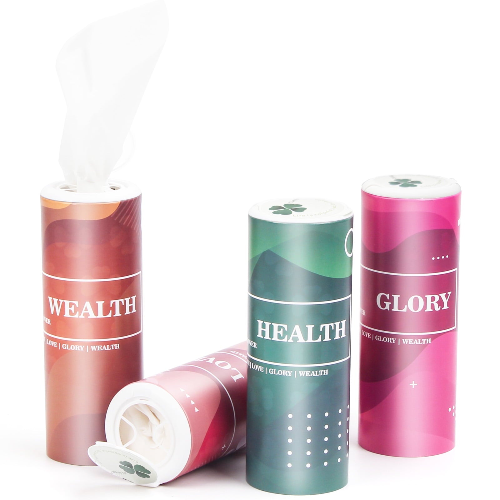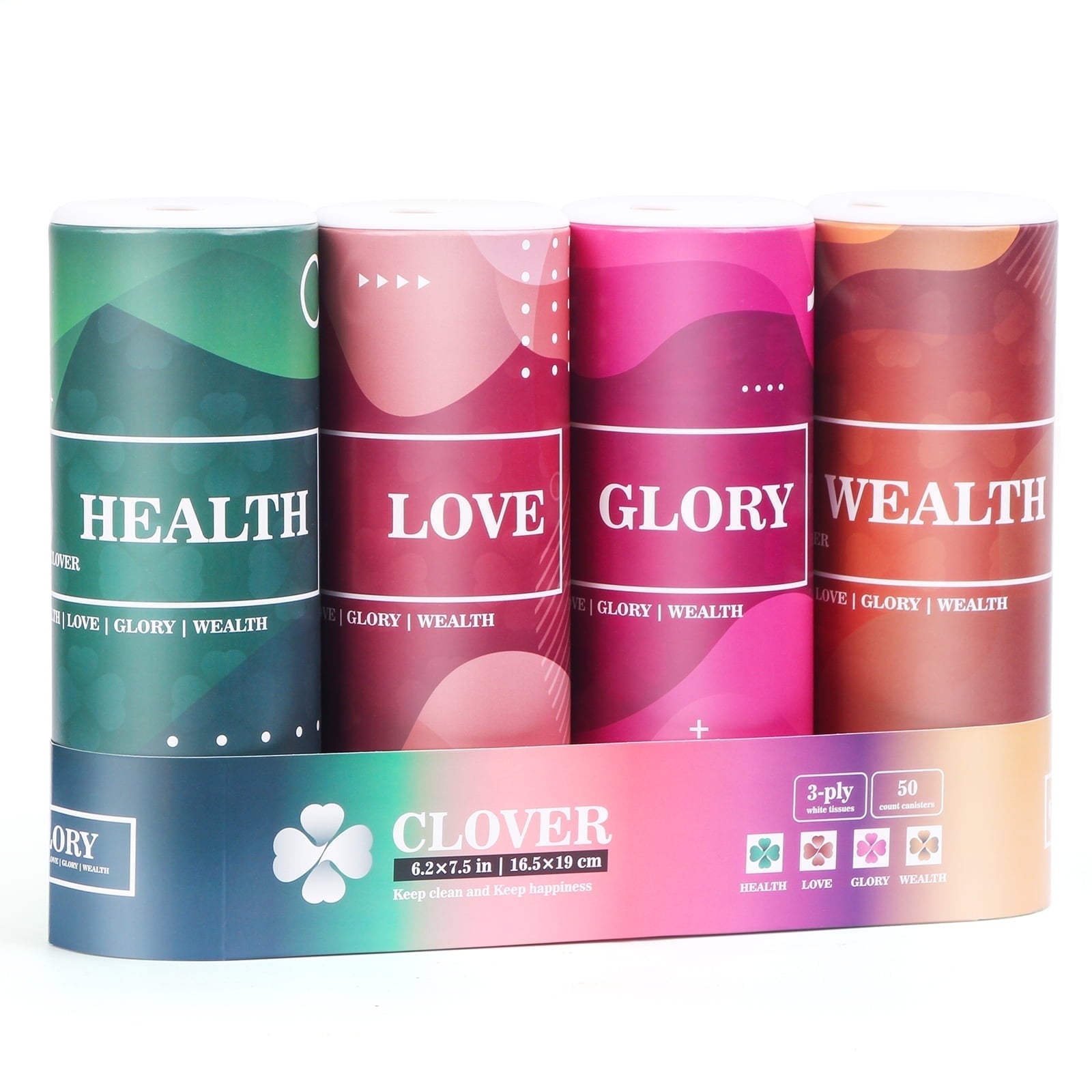 Clover Cylinder Facial Tissues for Car, Small Space,4 Tubes 3-Ply 200 Count Travel Tissus