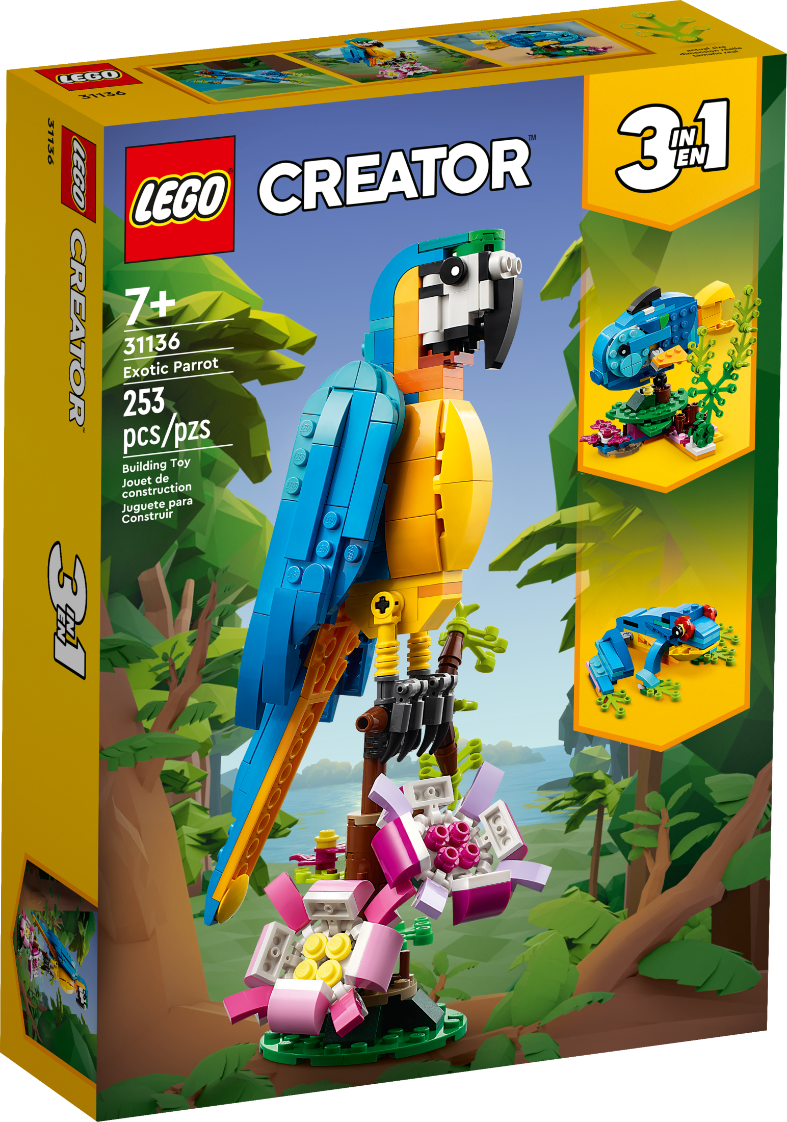 LEGO Creator 3 in 1 Exotic Parrot to Frog to Fish Animal Figures Building Toy, Creative Toys for Kids Ages 7 and Up, 31136