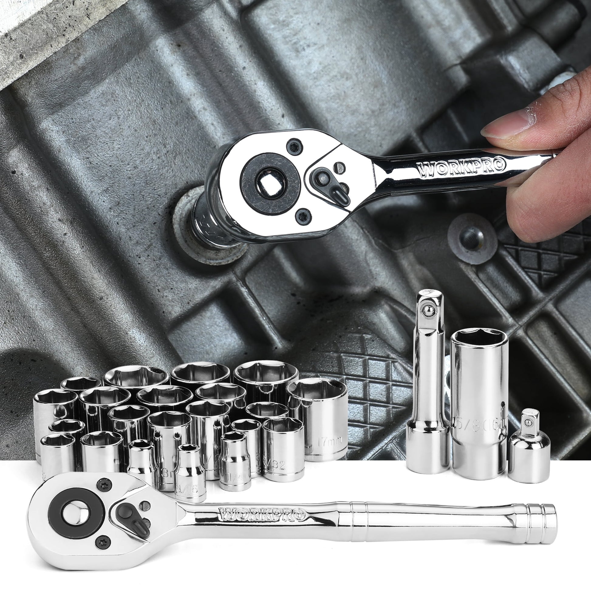 WORKPRO 125-Piece Auto Repair Tool Set,Mechanics Tool Set, General Household Home Repair Tool Kit with 3-Drawer Heavy Duty Metal Box,Hand Tool Kit